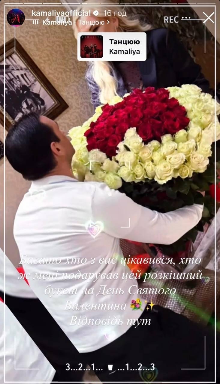 Втім, ім’я обранця вона так і не розкрила, лише показала його зі спини. На світлинах видно, що загадковий залицяльник приїхав до співачки додому. Чоловік був одягнений у білу сорочку та чорні брюки, а сам букет виглядав по-справжньому розкішно. Обличчя кавалера Камалія не демонструє, тож інтрига лише посилилася.