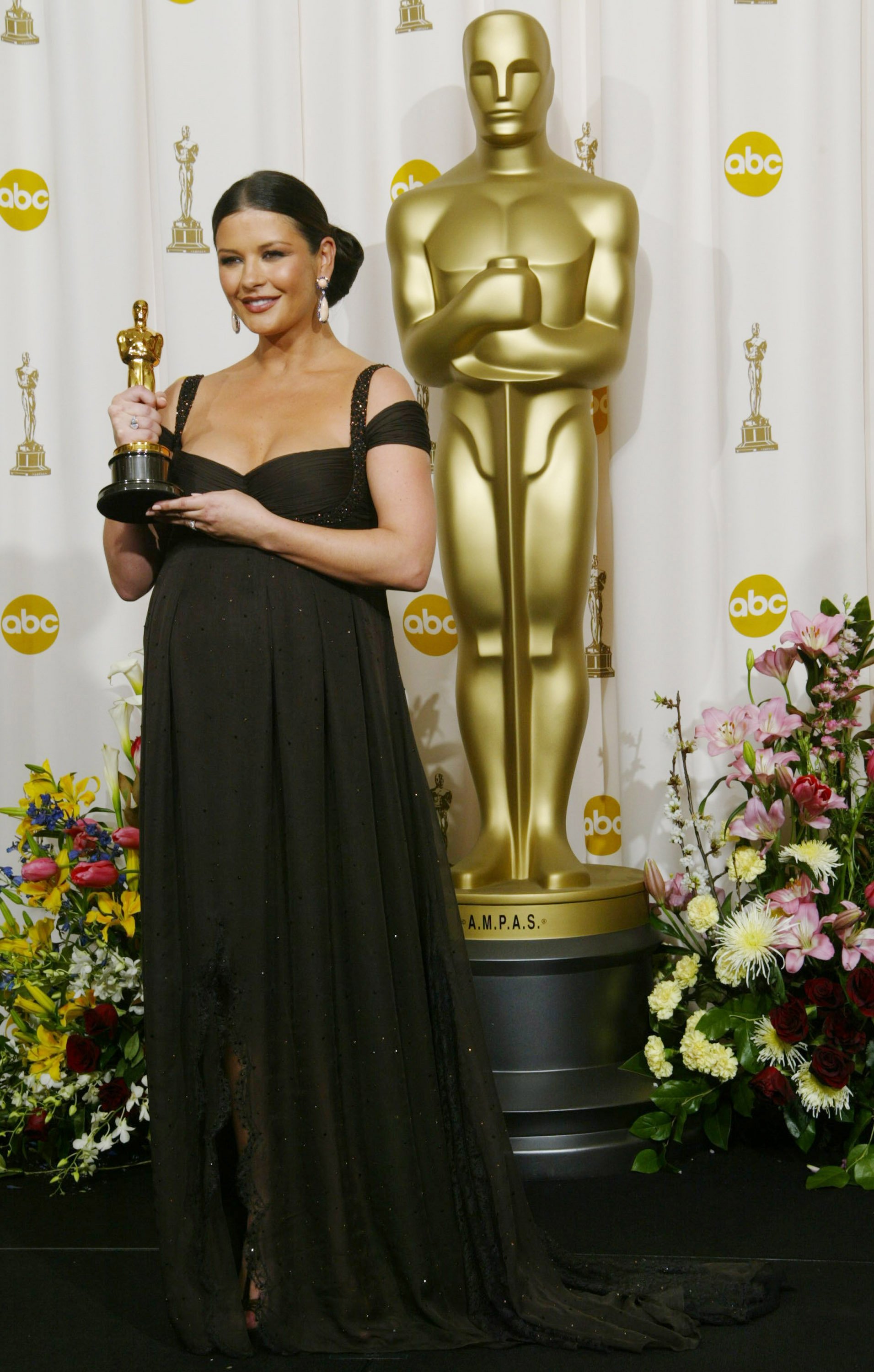 Ще один пам’ятний момент подарувала Кетрін Зета-Джонс. У 2003 році вона отримала "Оскар" за роль другого плану у мюзиклі "Чикаго". На той момент акторка була майже на дев’ятому місяці вагітності донькою Керіс.