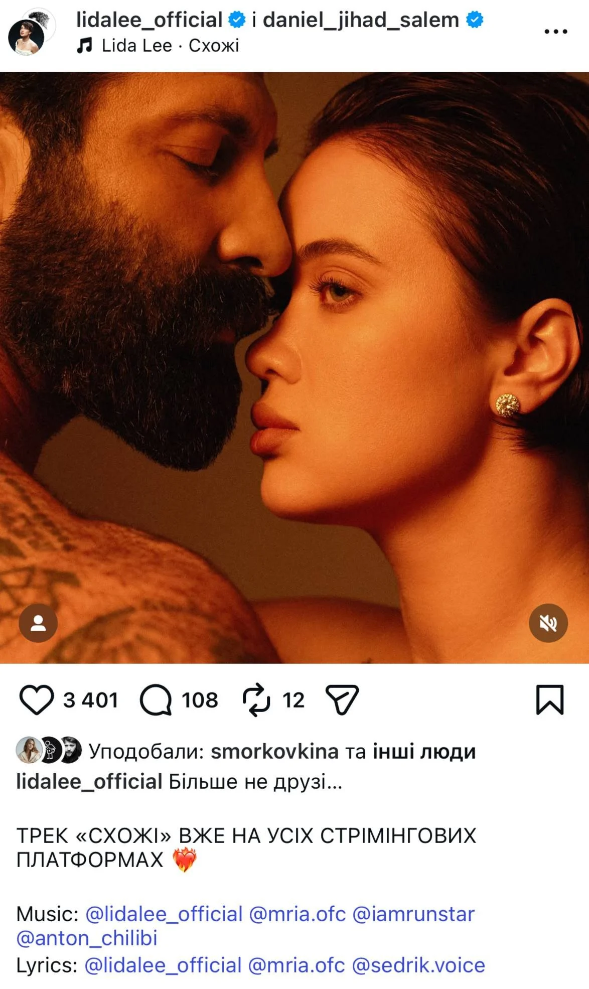 Особисте життя Lida Lee — доволі загадкова та цікава тема. Своїх обранців співачка афішує неохоче. Відомо, що вона була в стосунках з таємничим музикантом, які тривали понад 5 років, але так і не дочекалась пропозиції. Причина — в них були дружні, а не романтичні стосунки. Пізніше в Мережі почала "гуляти" інформація, що Ліда Лі зустрічається з Даніелом Салемом. І ось нарешті ці чутки підтвердилися. Співачка випустила кліп на пісню "Схожі" та офіційно показала публіці свого коханого. У кліпі пара засвітила своє реальне життя — затишні вечори вдома, прогулянки та романтичні моменти вдвох.
