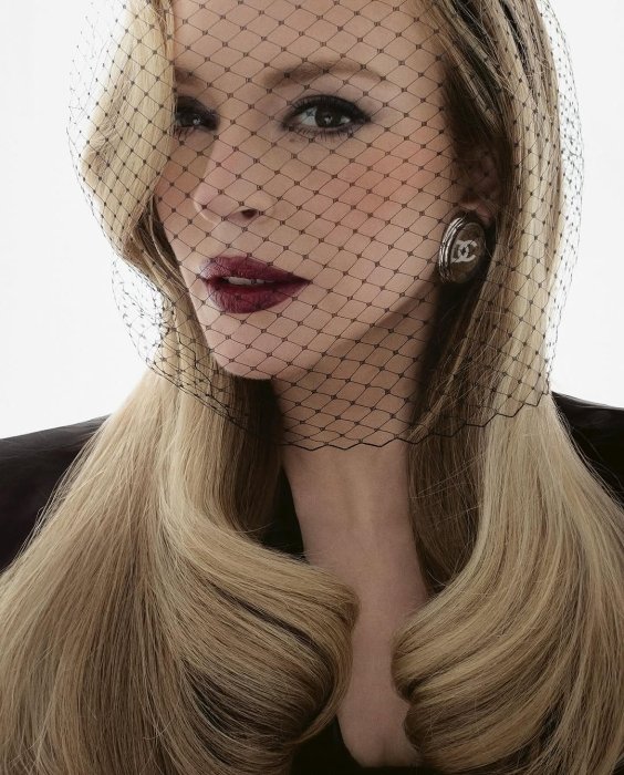 Також акторка мала нагоду приміряти чорний комбінезон та сережки від Chanel. Її лук доповнила вуаль в тон.