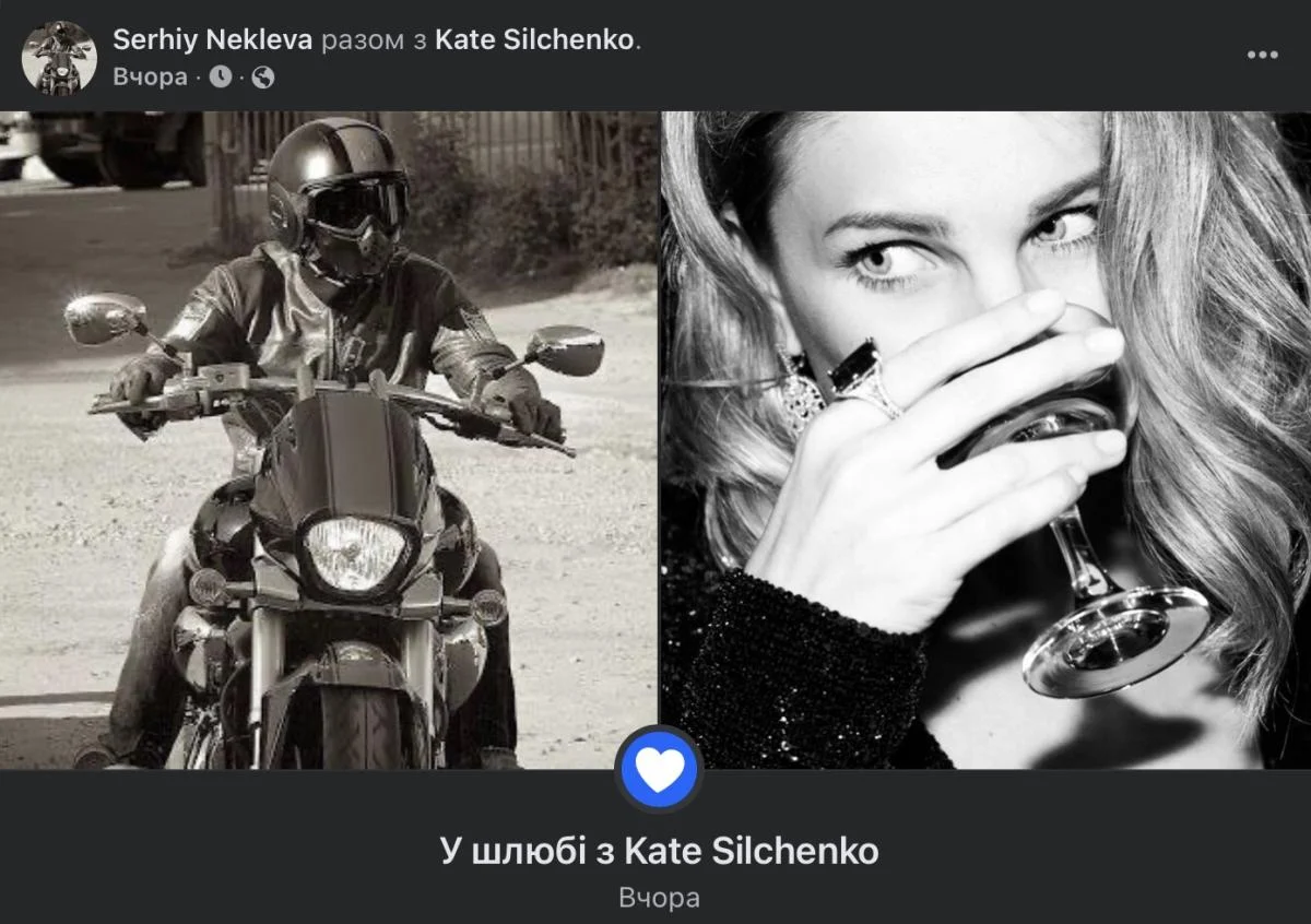 Шанувальники модного бренду The Coat були приголомшені, коли на сторінці Сергія "Картина" Неклєви, організатора заходів і бізнесмена, зʼявилася несподівана новина. У Facebook він оновив свій статус на "одружений з Катериною Сільченко" та додав романтичне фото.