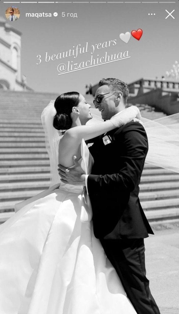 Зірковий наречений згадав у своєму фотоблозі про розкішну церемонію, яка відбулася на батьківщині у Грузії. Тоді молодша на 17 років Ліза була в традиційній білій сукні з фатою, а Іраклі обрав класичний костюм і метелик.