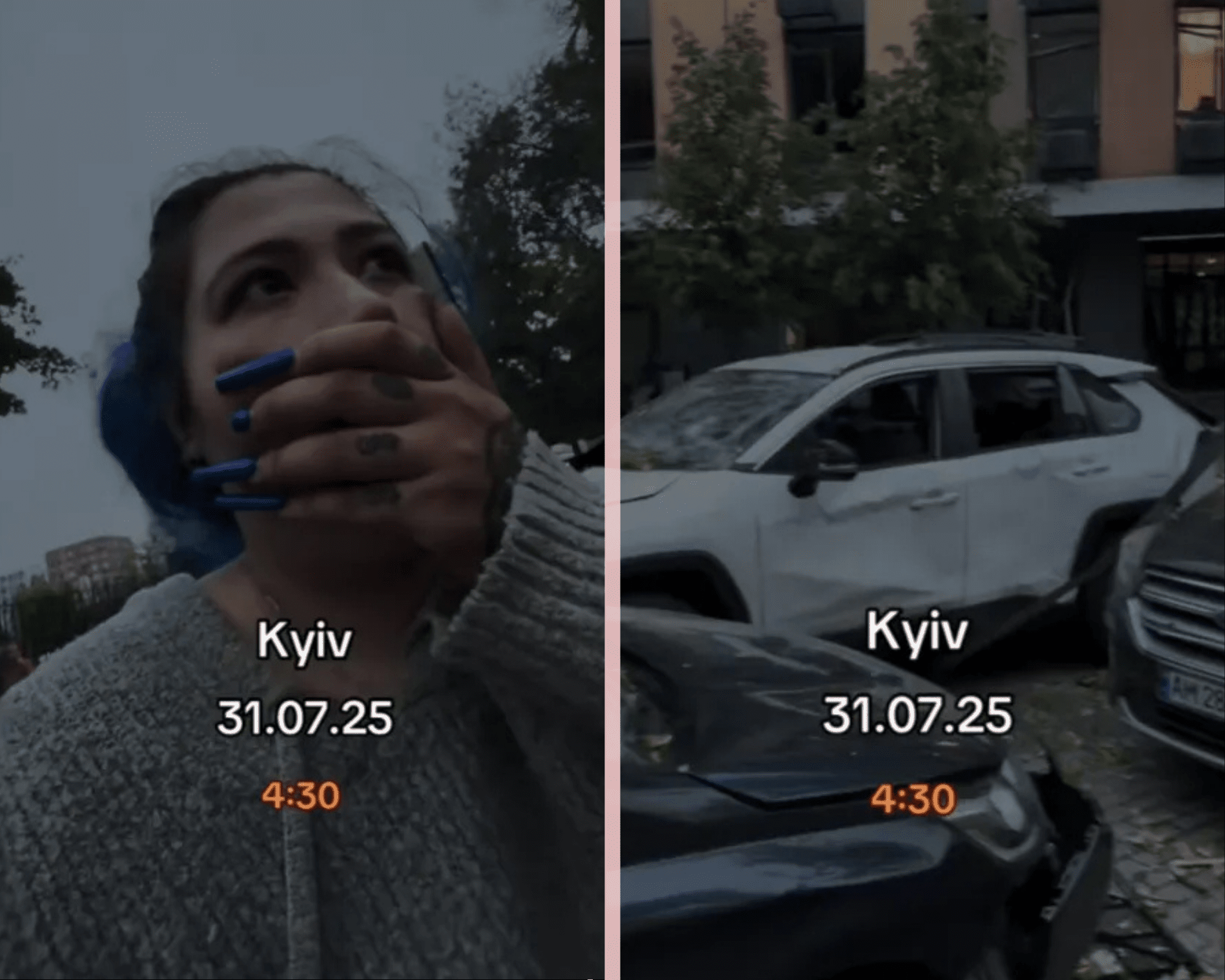 Зірка соцмереж показала наслідки влучення однієї з ракет, якими було атаковано столицю України