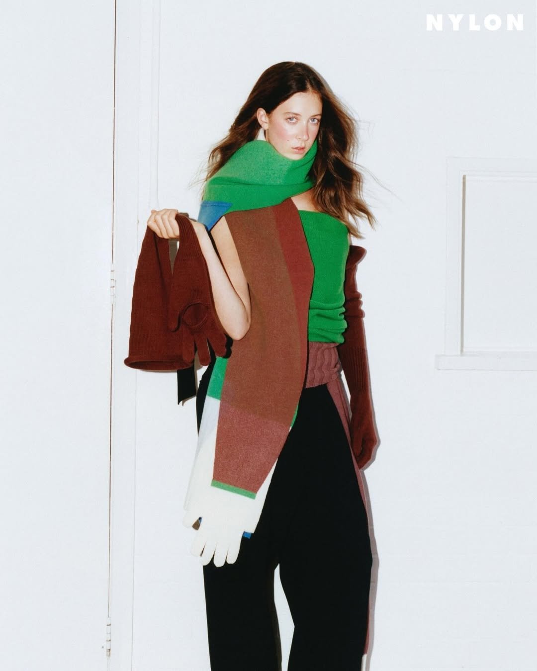 На головному фото вона постала в образі у кольорі кемел від Prada та прикрасах від Skydiamond. Волосся дівчини зібране назад, проте кілька пасем спадає на обличчя. Завершував лук ніжний макіяж.