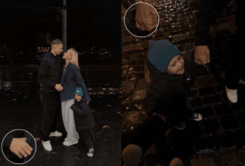На фото Бражко тримає Лева за руку, а на іншій — ніжно обіймає молоду дружину. Саме тут уважні підписники звернули увагу на обручку, яка точно стверджує статус стосунків футболіста.