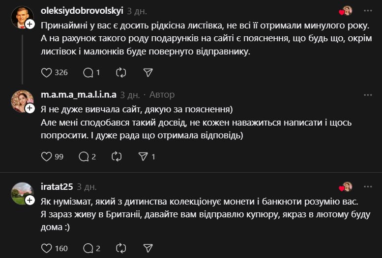 Як з’ясувалося, така листівка є рідкісним явищем, бо не всі могли її отримати, хто писав листи до родини. Але в коментарях знайшлися люди, які пообіцяли надіслати дівчині бажану купюру за просто так.
