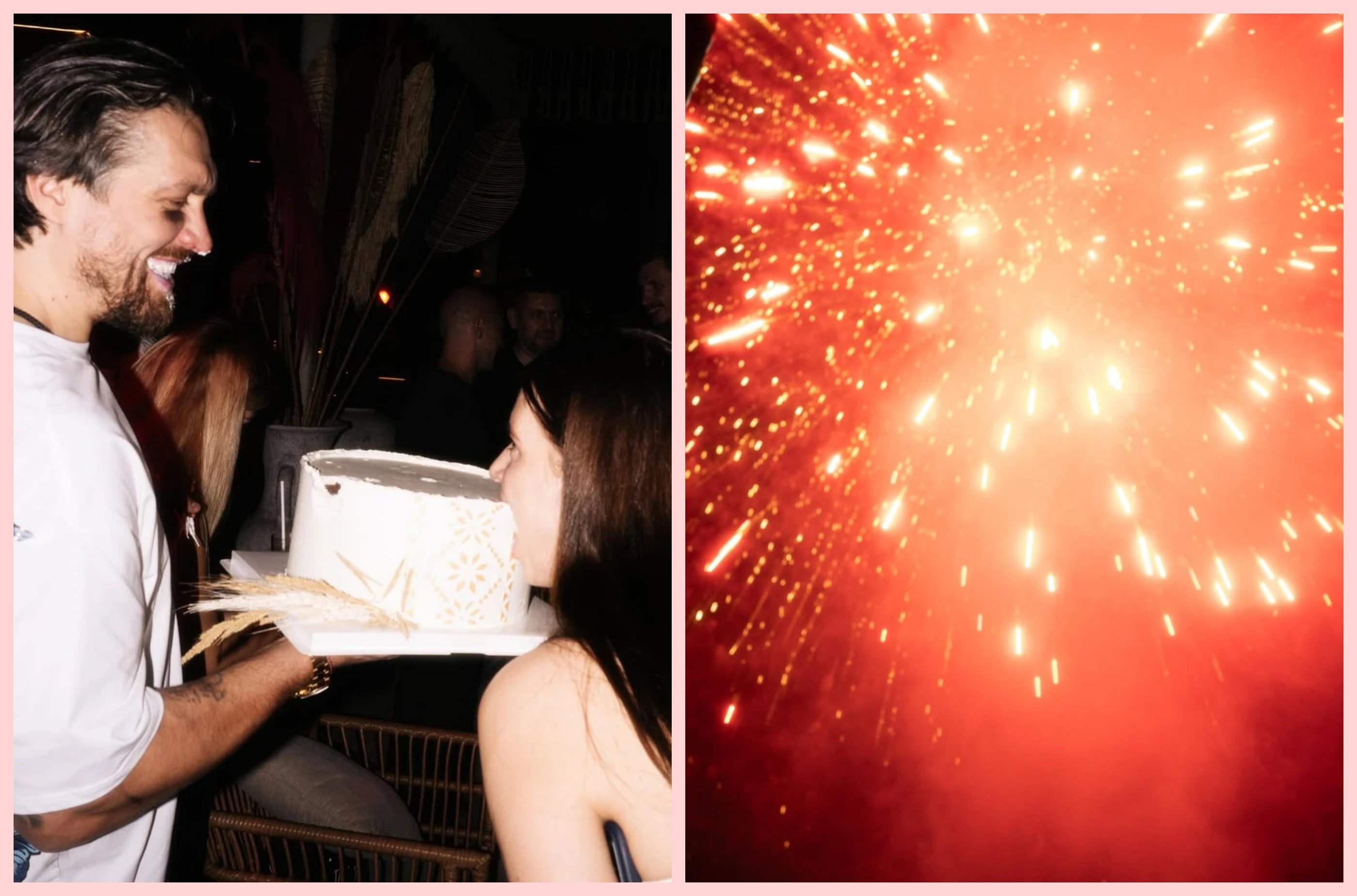 На фото, які опублікувала Катерина Усик, можна побачити затишну святкову вечерю, тортик та яскраві феєрверки, які стали фінальним акордом кількаденного родинного свята. Сама ж дружина відомого боксера на кадрах позує в ефектній мінісукні білого кольору.
