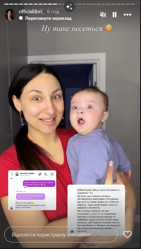 Я все-таки дам коментар насправді. Ти прокидаєшся — вже поліцію викликають, 1+1 пише. Значить, дивіться, я розумію, що людина, яка це зробила, знає, що таке мамська аудиторія. Мамська аудиторія — найактивніша аудиторія. І тригернути мам — дуже легко. Я сама мама. Мене можна тригернути на раз-два. Тому людина це зробила тільки заради активу, заради лайків,