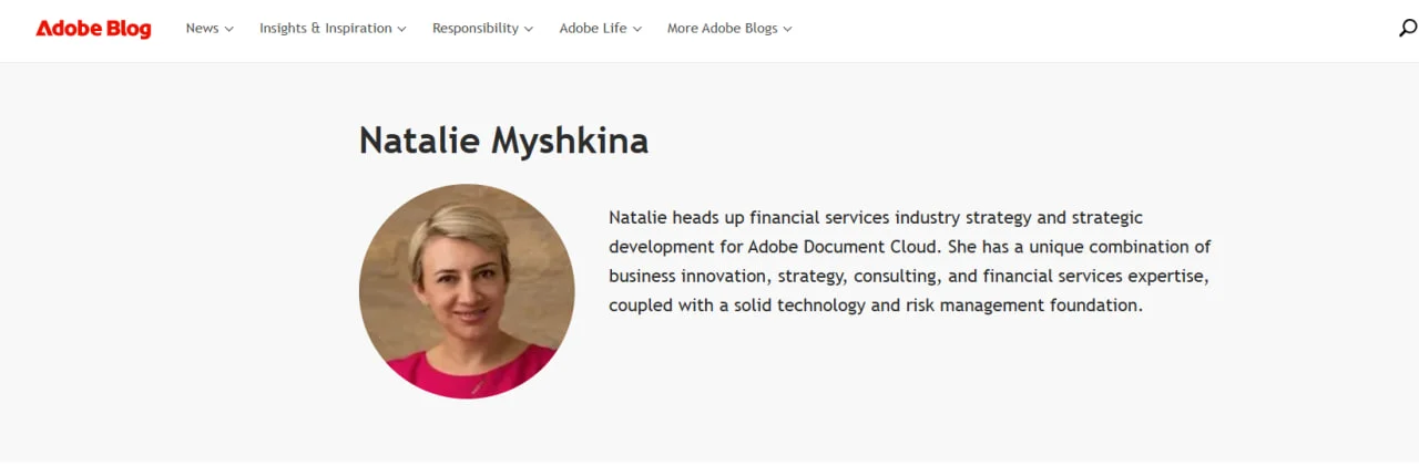 Наталія Мишкіна працює в Adobe. Скрин: adobe.com