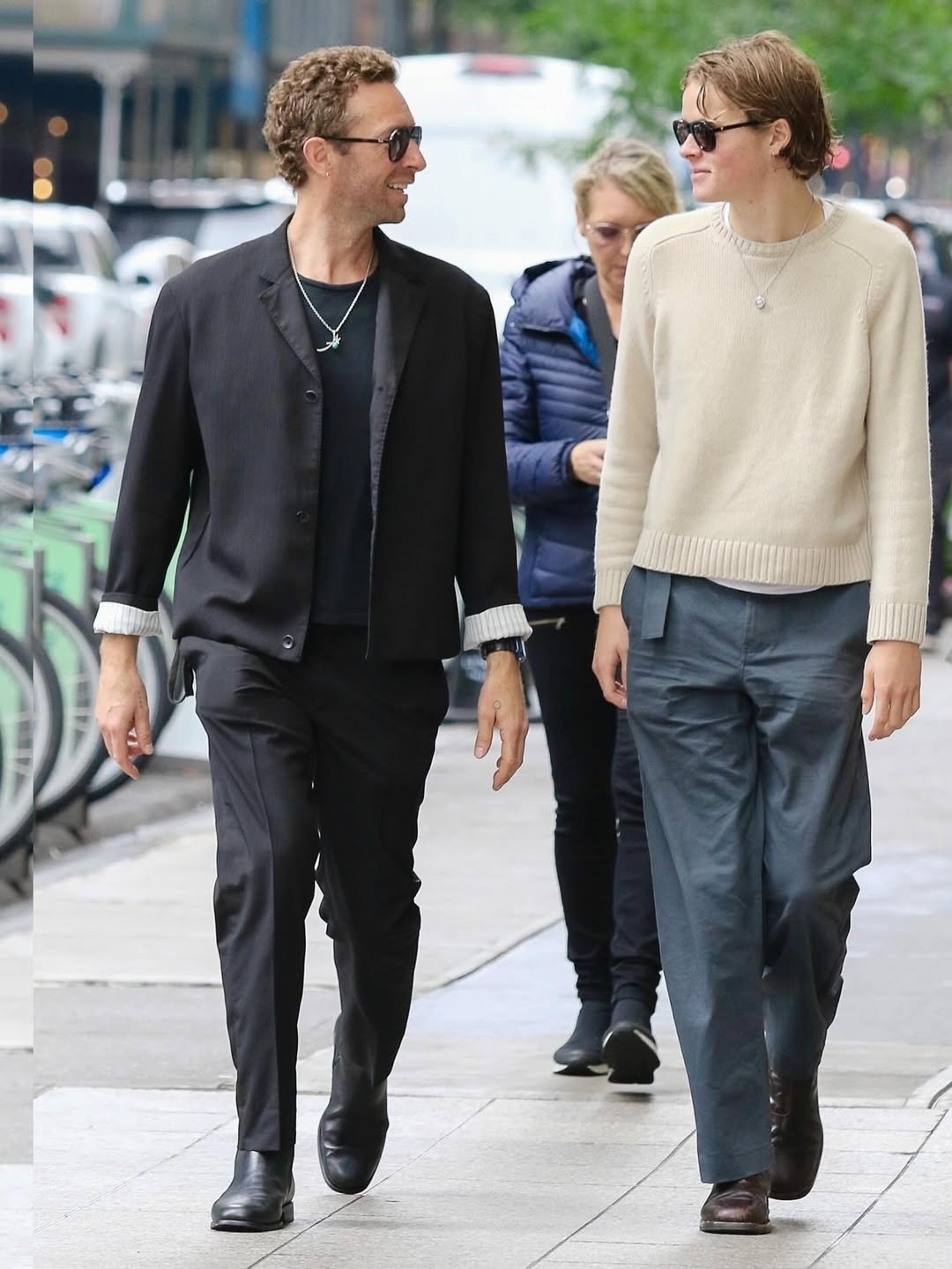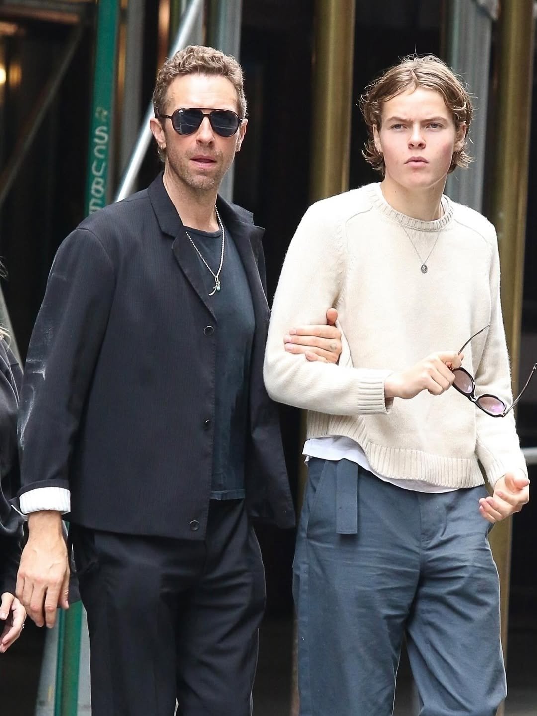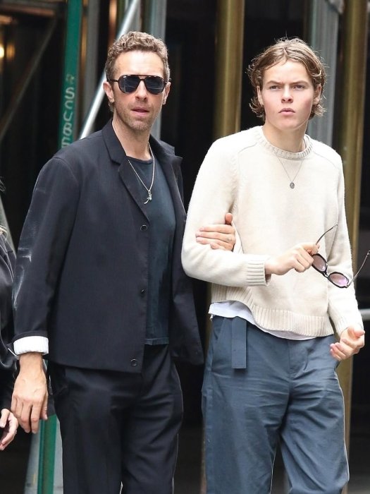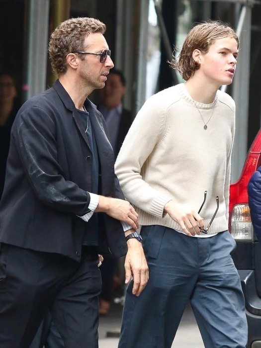 Так, 48-річного вокаліста групи Coldplay Кріса Мартіна днями заскочили у Нью-Йорку. Він прогулювався разом зі своїм сином від акторки Гвінет Пелтроу - 19-річним Мозесом. Про це пише Just Jared.