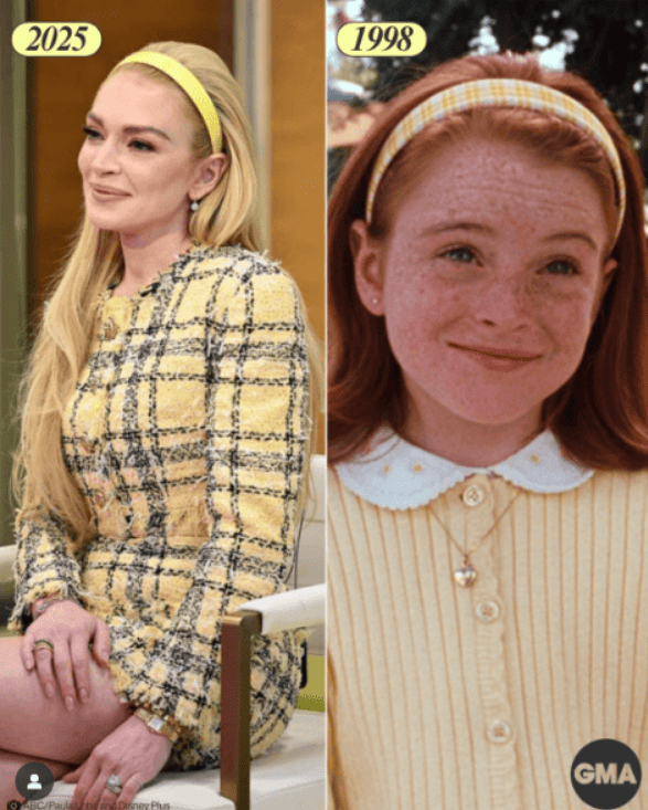 Днями Ліндсі Лохан сходила на інтерв’ю у модному вбранні від відомого бренду. Як виявилося, схожий образ вона носила і у дитячі роки. Порівнюємо ці два луки знаменитості - далі у цьому матеріалі.