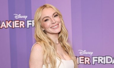 39-річна американська акторка Ліндсі Лохан стала гостею токшоу Good Morning America на телеканалі ABC у Нью-Йорку. Вона прийшла до студії у жовтій твідовій мінісукні, яку поєднала з босоніжками та обручем для волосся в тон.