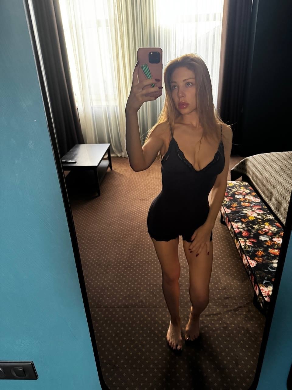 На одному з фото Тіна позує, дивлячись на себе в дзеркало, у чорному мінікомбінезоні з мереживом та глибоким декольте. Обтислий одяг дозволяє роздивитися фігуру співачки — тоненьку талію, пишні форми та стрункі ніжки.