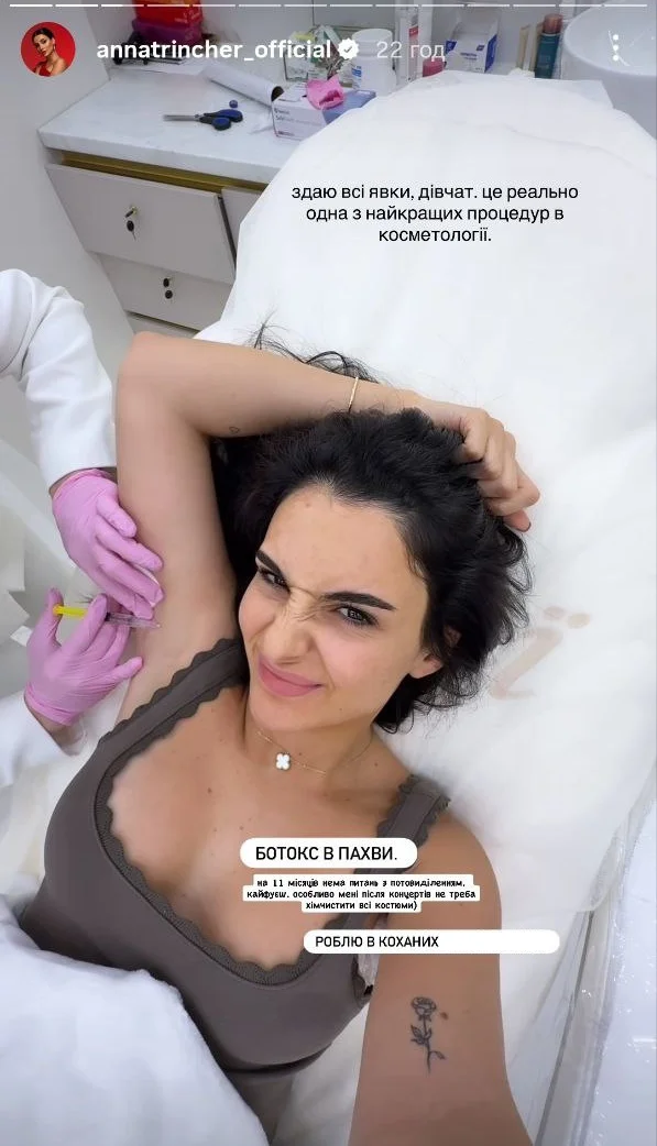 У сторіс в Instagram Анна показала, як проходить сеанс. Ін’єкції ботоксу їй вводять у пахви.
