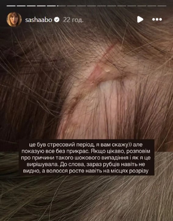 Саша Бо наголосила, що з часом ситуацію вдалося стабілізувати й запустити повторний ріст волосся. Також зірка додала, що шрами після підтяжки майже непомітні.