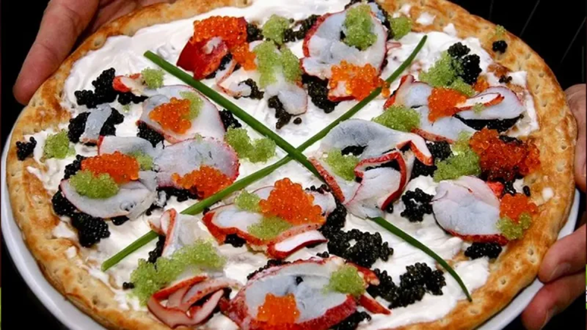 Кулінарне диво для справжніх любителів розкоші. І, звичайно, піци. Готується безпосередньо в домі замовника, і на це потрібно 72 години підготовки. До складу входить три види рідкісної ікри, омари з Норвегії та Франції, моцарела буфало, рожева австралійська сіль, шампанське Krug та коньяк Remy Martin Louis XIII. А у тісто додають 24-каратний золотий пил.