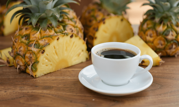 Як підсолоджувач, ананасовий сік містить велику кількість фруктози та органічних кислот. Тому він підкреслює смак та аромат кави, а не “глушить” її. Особливо гарно це працює зі світлообсмаженою арабікою, яка сама має ягідні та фруктові нотки. Смак стає ще більш округлим та свіжим.