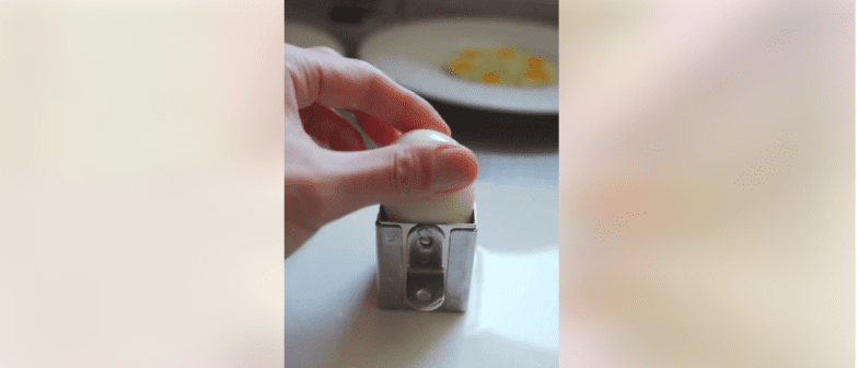 Зараз стало значно простіше, на торгових майданчиках можна придбати пластикову форму, яка коштує зовсім дешево. Насамперед зваріть правильно яйця додавши у воду трохи солі, щоб легко чистилися. Далі очищене яйце потрібно покласти у форму, притиснути гнітом і покласти у воду з льодом. Залишити на 1-2 години. Ви отримаєте ідеально квадратне яйце, яке можна приготувати абсолютно з будь-якими начинками. Ваші гості будуть вражені майстерністю господині.