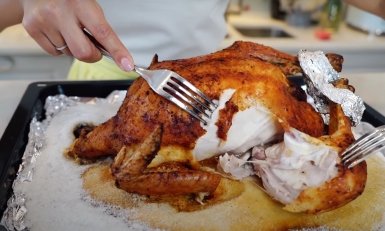 За цей час сіль затвердне. Дістаньте курку та смакуйте - м’ясо буде легко відділятися від кісток, але залишиться соковитим. Приготуйте до неї улюблений гарнір, наприклад, ніжне пюре.