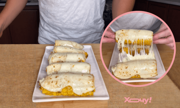 3. Запікаємо кукурудзу 40–60 хвилин при 190°C. Тоді дістаємо, викладаємо в один шар, викладаємо зверху сир і повертаємо в духовку на 10 хвилин.