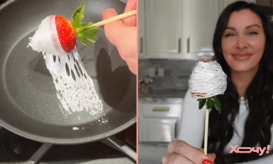 У блозі chefgenevieve розповіли, як приготувати спокусливий десерт. Для нього потрібно лише трохи вершкового масла, маршмелоу та свіжа полуниця. Так, це дорого, але “вау-ефект” того вартий, повірте. Також знадобляться дерев’яні шпажки.