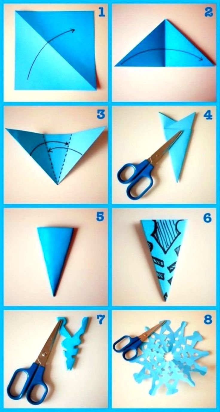 Для вас — легка покрокові інструкція, як правильно скласти папір, щоб вирізати сніжинку. Не поспішайте і робіть все обережно, аби ваш виріб не пом’явся і не порвався. Спочатку допоможіть дитині згорнути папір необхідним чином, а далі вона легко впорається з усім самостійно.