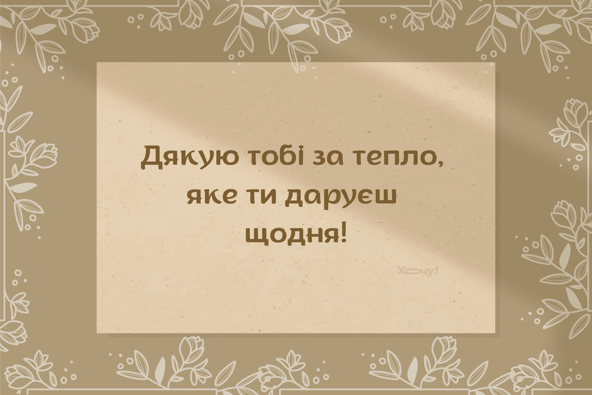 Дякую тобі за тепло, яке ти даруєш щодня. Ти моє все!