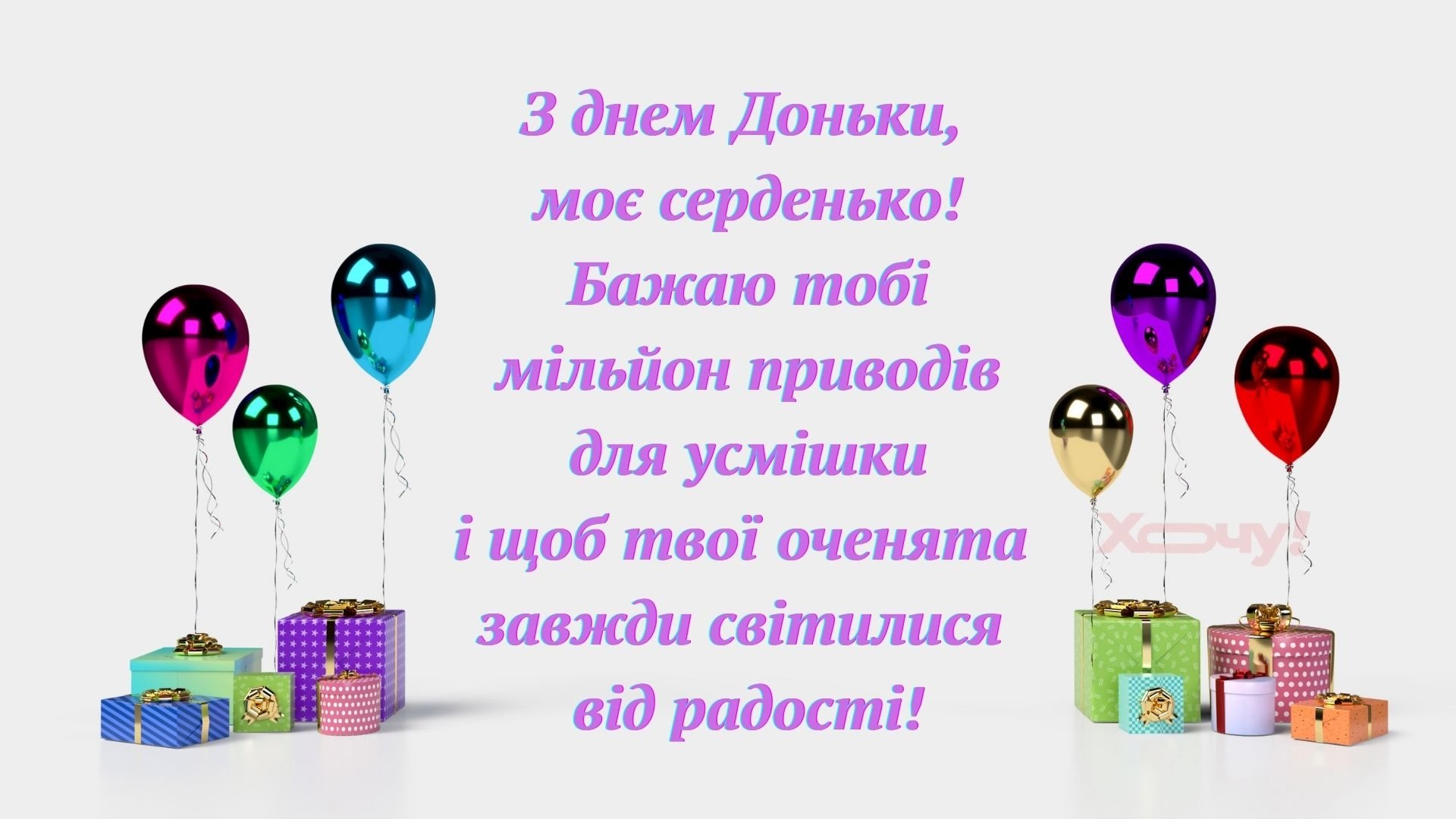 Хочу! вітає всіх донечок з цим чудовим святом. Додайте його до скарбнички ваших сімейних свят і привітайте донечок красивими листівками і картинками, які ми підготували для вас. Якщо немає можливості зробити це особисто, можна відправити милу листівку чи приємну картинку зі святом.