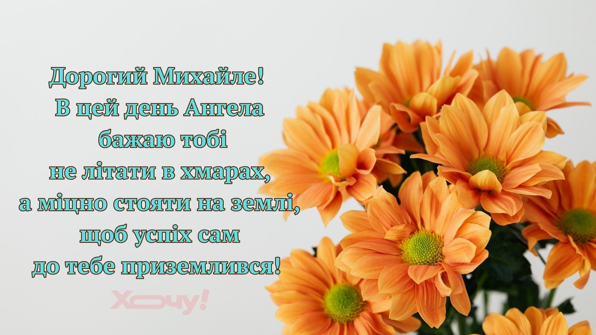 Михайле, у цей день хочу побажати тобі, щоб архангел Михаїл завжди був твоїм захисником і наставником, щоб твоє серце завжди було сповнене надією та радістю. Хай кожен твій день буде успішним, а кожна мить - неповторною та щасливою!